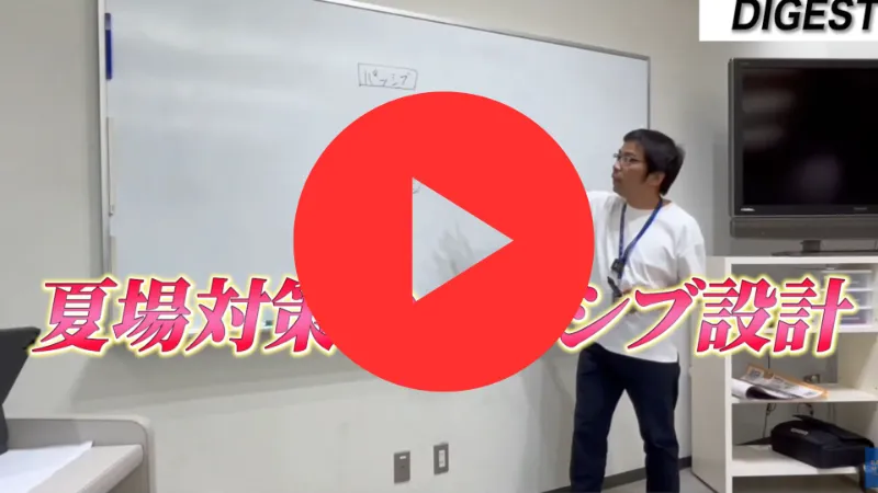 - 夏の対策:日射遮蔽(にっしゃしゃへい) 夏は太陽の角度が高く、真上から照りつけます。この強い熱を家の中に入れない工夫が、夏を涼しく過ごす最大のポイントです。「パッシブは冬より夏場対策の方が大事」。