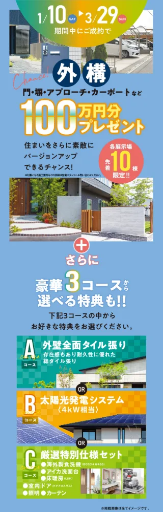 加古川展示場 外構100万円分+選べる豪華特典キャンペーン